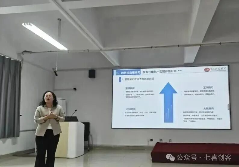 岳佳坤教授以《同频共振:黄科大精神引领下的教师成长与学校发展》为主题,结合自身职业发展历程,围绕“扎根岗位夯基础”、“深耕课程求突破”、“跨界担当拓格局”三个维度分享成长经验。她以刚入职的辅导员工作为起点,阐述立足岗位、实干沉淀的成长根基,强调辅导员工作虽琐碎,却是教育价值的重要沉淀;接着,岳教授围绕课程建设展开深入分享,系统解读一流课程建设理念与实施路径,结合自身实践阐述了从“站稳讲台”到“深耕课程”的转型经验。其团队牵头建设的《创业基础》课程获批国家级本科一流课程,指导学生作品多次在省级以上学科竞赛中斩获佳绩。此外,岳教授还分享了借调工作中的跨界成长,从思想、政治、能力、大局意识四方面阐述提升路径,让在场教师体会到“脱离舒适区、实践出真知”的真谛。