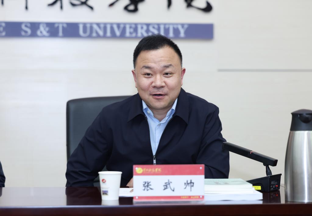 张武帅对胡大白董事长深耕民办教育的深厚情怀、坚守教育报国的责任担当及敢为人先的创新精神高度敬佩并充分肯定。他解读了“两企三新”(新经济组织、新社会组织、新就业群体及相关企业)的核心内涵与时代价值,阐明了 “两企三新” 党建处聚焦新兴领域党建提质增效、统筹资源整合、强化指导服务的主要工作职责。在充分认可我校党建工作政治站位高、实践路径实、示范效应强的基础上,张武帅明确表示,将系统梳理我校党建工作中的可复制、可推广经验,在全省 “两企三新” 领域及民办高校等社会组织中广泛推广,以点带面激活新兴领域党建新动能。