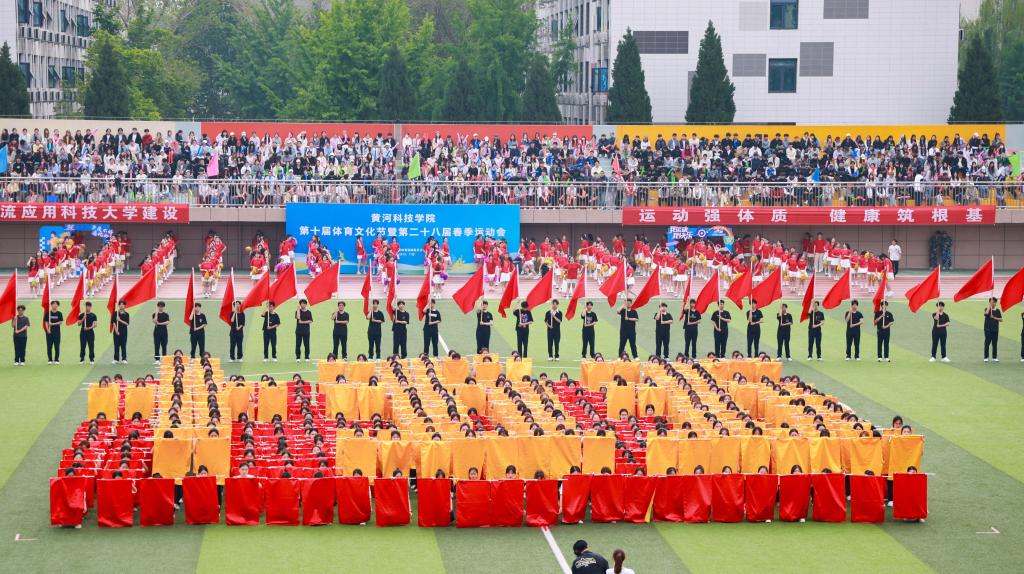 在创办人、董事长胡大白宣布黄河科技学院第十届体育文化节暨第二十八届春季运动会开幕后,全场响起热烈的掌声、欢呼声、锣鼓声,校园处处洋溢着蓬勃向上的青春气息。