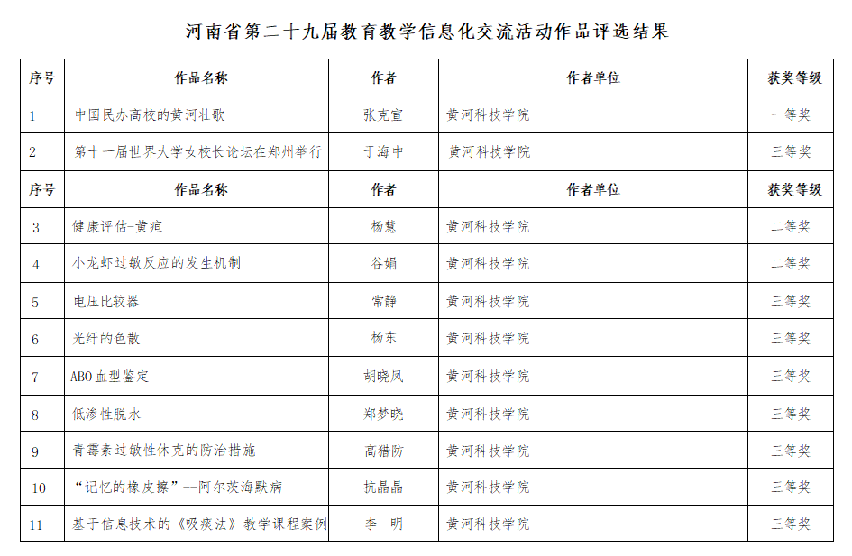 学校高度重视此次交流活动,信息化建设与管理中心积极组织教师参与申报。经专家评审,共有11件作品获奖。其中,张克宣老师创作的《中国民办高校的黄河壮歌》荣获“优秀教育电视节目”一等奖;杨慧、谷娟等老师在微课项目中分获二等奖;常静、杨东、胡晓凤等多位老师的微课作品,以及李明老师提交的《基于信息技术的〈吸痰法〉教学课程案例》荣获三等奖。