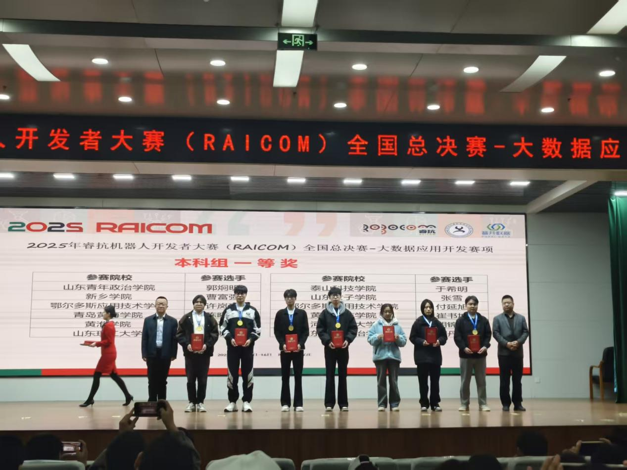 近日,2025年睿抗机器人开发者大赛全国总决赛大数据应用开发赛在石家庄市圆满落幕。工学部大数据与计算机应用科教中心学子组成5支参赛队伍,凭借扎实的技术功底和出色的现场表现,从全国众多晋级队伍中脱颖而出,最终斩获1项全国一等奖、4项全国三等奖。