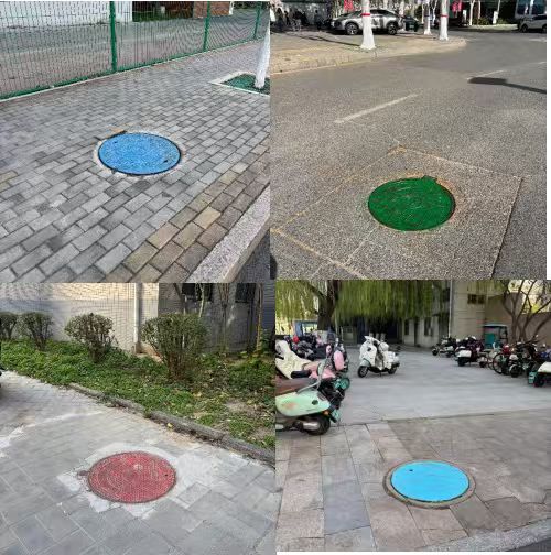 据了解,新标识体系以色彩清晰划分井盖属性:绿色代表校园网,传递安全、活力的管理理念;浅蓝色、红色、深蓝色则分别对应中国移动、中国联通、中国电信的通信设施,既贴合各运营商品牌视觉特征,又让井盖功能“直观可见”。