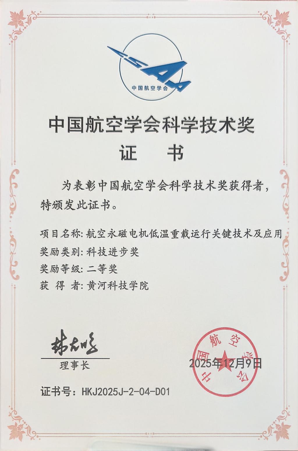 “航空永磁电机低温重载运行关键技术及应用”由黄河科技学院牵头,联合新航工业(集团)有限公司、河南华中星科技电子有限公司共同完成。项目历时10余年,成功解决了航空领域低温重载工况下电机启动及运行困难、力矩不足、转子位置估算精度低等长期存在的技术瓶颈,显著提高了电机在低温重载等复杂环境下运行的稳定性,为推动航空永磁电机产业发展做出贡献。