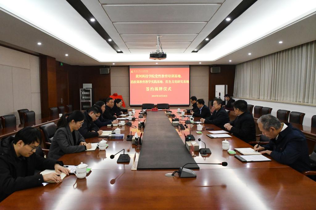 为更好地开展党性教育培训、推进思政课教育教学和红色文化研究,经与河南大别山干部学院充分协商,10月28日,我校“党性教育培训基地”“思政课教育教学实践基地”“红色文化研究基地”合作签约暨揭牌仪式在河南大别山干部学院举行。河南大别山干部学院党委副书记、副院长王勇,党委委员、副院长韩宗平及相关部门负责人,我校副校长、人文思政部部长、红色文化研究中心主任于向东,校党委委员、组织部部长贾福辉,校党委委员、...