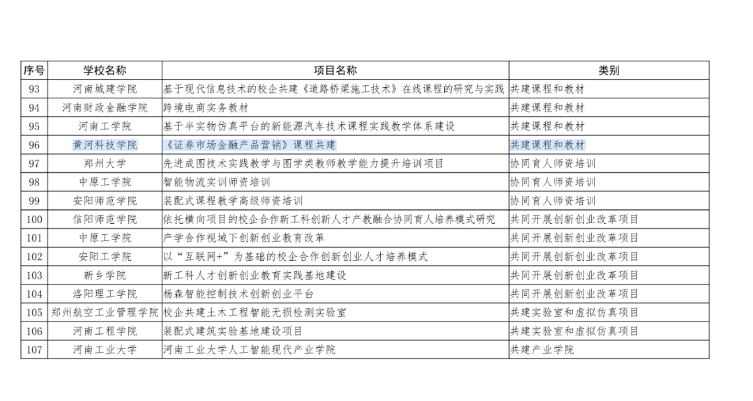 近期,河南省教育厅发布《河南省教育厅关于公布本科高校产教融合品牌项目名单的通知》,我校3个项目获河南省本科高校产教融合品牌项目认定。其中“黄河科技学院新工科(机械设计制造及其自动化)实习实践基地”“黄河科技学院新医科实践基地”2个项目认定为共建实践教学条件和基地项目,“《证券市场金融产品营销》课程共建”认定为共建课程和教材项目。