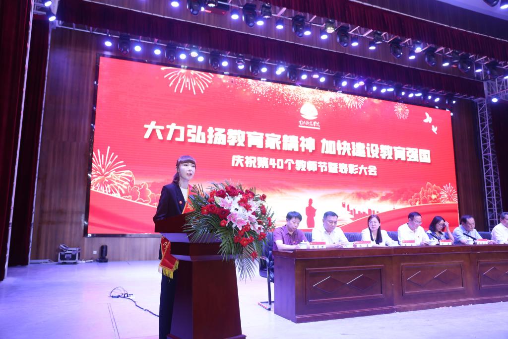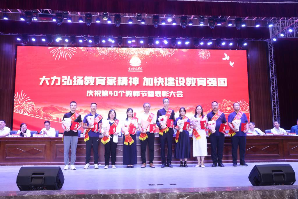 今年是新中国成立75周年,是全面贯彻落实党的二十大精神、党的二十届三中全会精神之年,也是我校喜迎建校40周年和继往开来推进高质量发展的开局之年,又恰逢第40个教师节。一年年春华秋实,一载载桃李芬芳。学校广大教师牢记为党育人、为国育才使命,扎根三尺讲台,潜心教书育人,始终同党和人民站在一起,以赤诚之心、奉献之心、仁爱之心投身教育事业。9月10日,我校在艺术中心召开以“大力弘扬教育家精神,加快建设教育强国”为主题的庆祝第40个教师节暨表彰大会,对学校在教育教学和管理服务工作中涌现出来的先进集体和先进个人进行表彰。