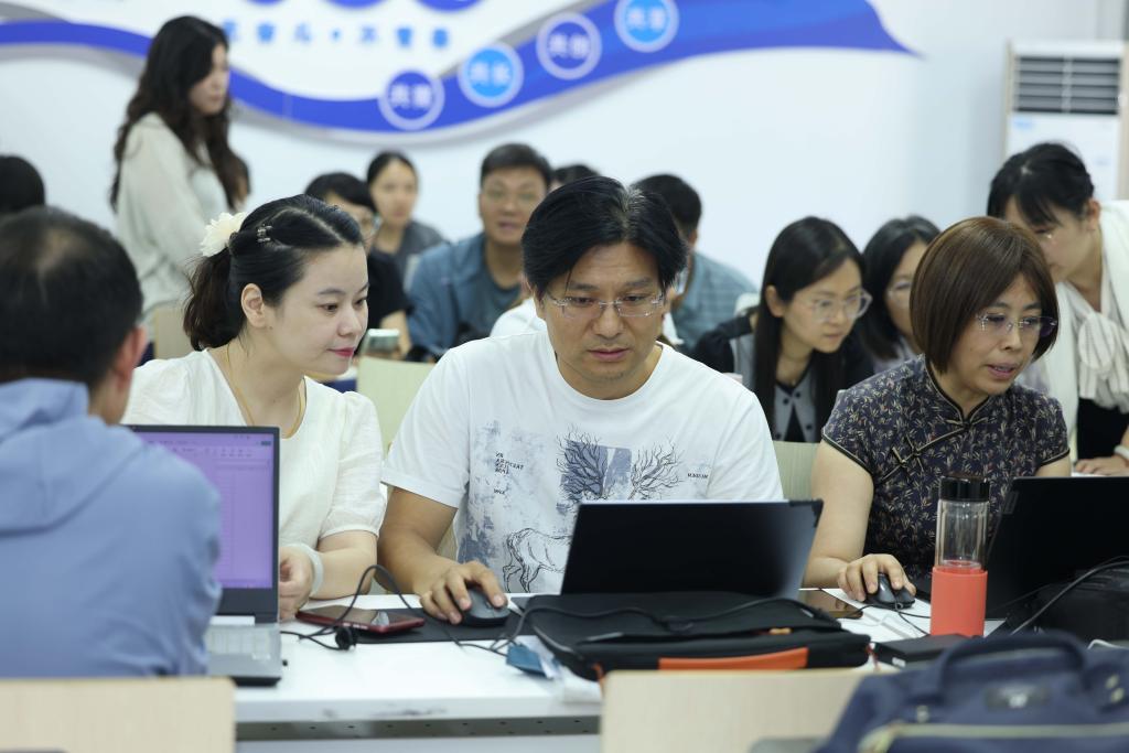 在实操指导环节,李海霞介绍了制作本科专业能力图谱的总体思路,并结合学前教育专业示范案例,从确定岗位、岗位子任务分解、能力标签提取、能力体系整合、能力与课程映射关系五个方面详细讲解了能力图谱构建的方法与实施步骤,为各本科专业开展实践提供了可借鉴的范式。随后,与会专业教师开展了实操练习,对能力图谱构建中的难点问题进行了深入的研讨交流。