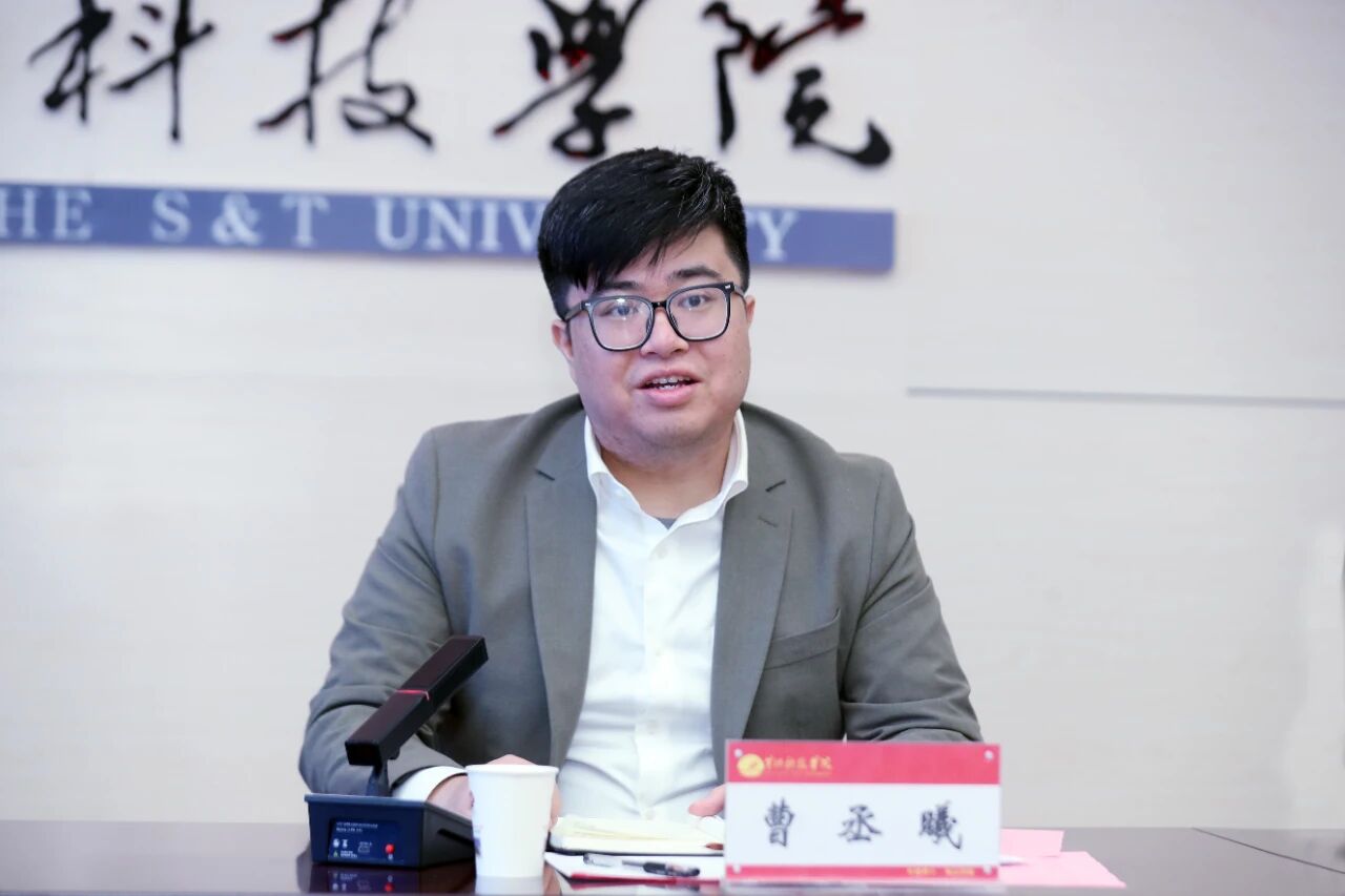 胡大白董事长介绍了学校的办学优势与特色。杨保成校长阐述了我校近年来创新提出的“产业教育化”理念,介绍学校围绕“1248”发展战略,在体制机制、教育教学、学生工作与数字化转型等四项改革方面的做法、成效与未来目标。曹丞曦主席对此表示高度认同,并指出双方在零碳校园建设、运动校园建设、学科制改革及未来大学目标四个方面存在诸多相似、相通之处,黄科大的办学精神、理念与创新实践值得学习。