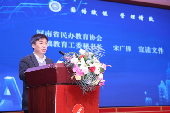 宋广伟秘书长宣读河南省民办教育协会成立教师成长学院的决定。