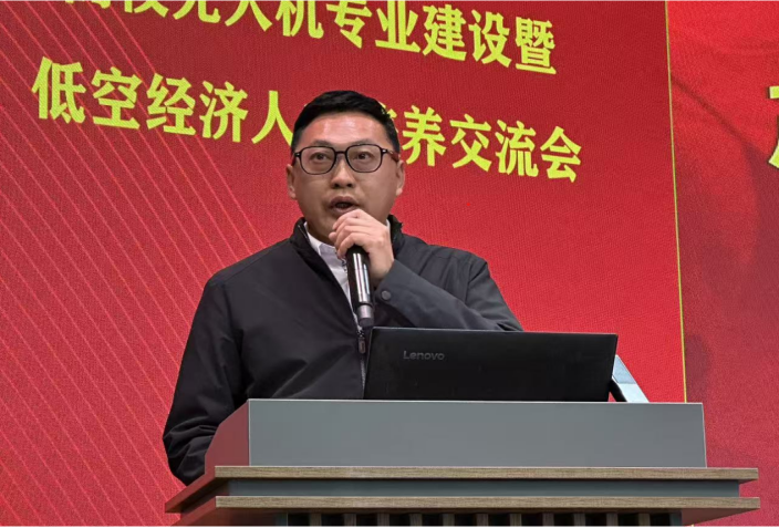 交流环节,河南机电职业学院航空学院院长许智辉、副院长熊莎莎分别围绕无人机专业建设实践、“一贯穿两融合三递进”课程体系构建等内容分享经验;河南省黑龙江商会副会长、龙御无人机服务管理平台创始人许振超提出“校企合作双向耦合”理念,详解平台人才培养规划与产教融合落地路径,为民办院校精准对接产业需求、优化人才培养方案提供了实操参考。