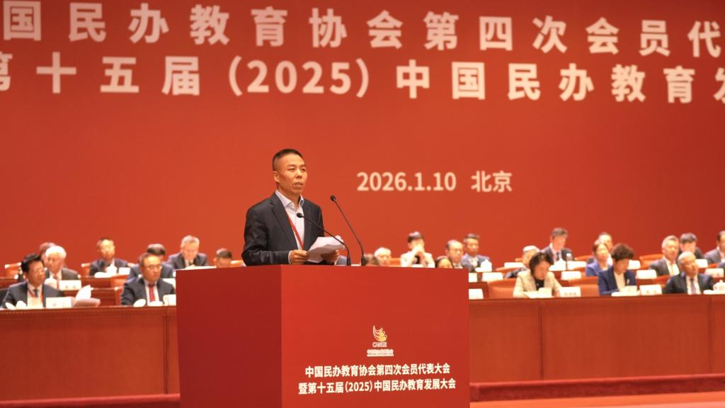 1月10日,中国民办教育协会第四次会员代表大会暨第十五届(2025)中国民办教育发展大会在北京召开。民进中央主席蔡达峰,第十三届全国政协副主席、国家教育咨询委员会委员辜胜阻,教育部原党组书记、部长袁贵仁,全国政协常委、教科卫体委员会副主任、中国科协原党组书记尚勇,全国人大常委、全国人大教科文卫委员会副主任古小玉,全国政协常委、副秘书长、民革中央副主席兼秘书长李惠东,教育部党组成员、副部长杜江峰,全国人大常委会原副秘书长、法律委员会原副主任李连宁,中国教育发展基金会理事长、中纪委驻教育部纪检组原组长王立英,中国教育国际交流协会会长、教育部原副部长刘利民,中国高等教育学会会长、教育部原副部长林蕙青,中国教育学会顾问、教育部原副部长郑富芝,教育部高校教育教学评价专家委员会副主任、中国高等教育学会第六届理事会会长瞿振元,全国性行业协会商会第十四联合党委书记、中国人民大学原党委书记靳诺,原国家汉办主任、孔子学院总部原总干事许琳,中国教育发展战略学会会长、武汉大学原党委书记韩进,全国人大教科文卫委员会教育室主任方光伟,民进中央秘书长金永伟,教育部发展规划司司长郭鹏,教育部校外教育培训监管司司长范海林,教育部基础教育司二级巡视员张权,中国教育学会秘书长杨银付,教育部学生体育协会联合秘书处秘书长、中国学生体育联合会副主席陈东升,以及中央社会工作部、教育部有关司局工作部门负责同志出席大会开幕式。